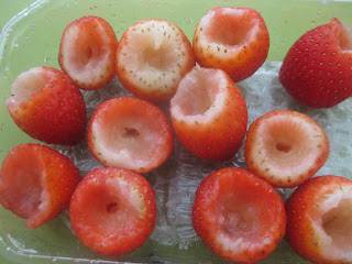 - Lavar y vaciar un poco las fresas .Yo con el juguetito que me regaló mi amiga la pishona