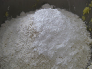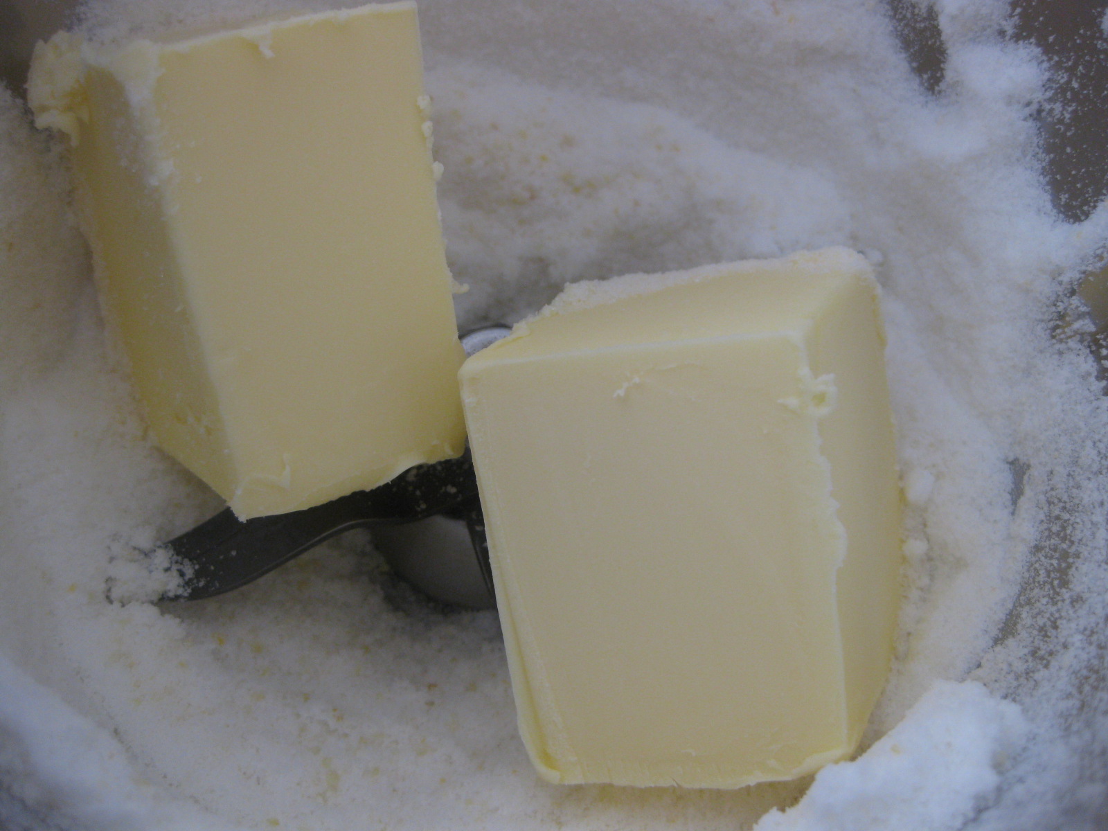 - Batir con unas varillas la mantequilla con el azúcar y poco a poco ir añadiendo los huevos, la ralladura de limón, la sal, y el agua de azahar
