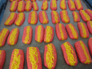 Este año , como éramos muchas madres españolas había que poner orden en las comidas para que no llevaramos todas tortilla de patatas...y mira que está buena y le gusta a los niños...así que cada una tiene un plato asignado, yo me ofrecí a hacer unas bicas de Trives y algo más,pensando en unas galletitas con la bandera,el problema es que no sabía como hacerlas,le tengo que dar las gracias a Almudena, del blog de misgalletasymistartas ,que al preguntarle y sin conocerme de nada me estuvo aconsejando cómo hacerlas con fondant, esa era mi idea hasta que fui a comprar el fondant y sólo había botes de 7 kilos...un poco demasiado,no?...vale , preparo un fondant de nubes pensé...justo cuando las iba a hacer me leo en un grupo de cocina que salía fatal y era engorroso de manejar...así que idea deshechada, no me quedó más remedio que ingeniármelas y hacer unas galletas de mantequilla en bandas, cruzando los dedos para que quedaran unidas