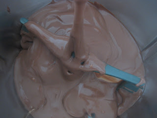 - Calentar en un cazo al baño maría la nata , el azúcar y el chocolate , removiendo hasta que quede todo bien disuelto y mezclado