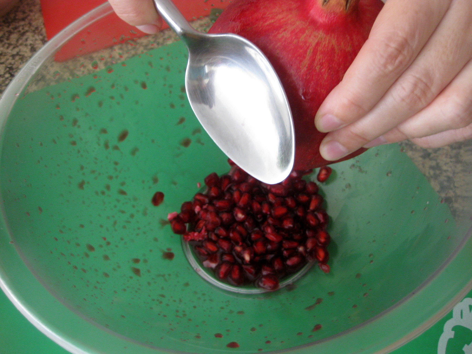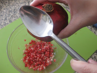Es que es tan refácil como partir la granada a la mitad e ir dando golpes sobre la cascara con la parte de abajo de una cuchara,sobre un bol... los granos iran cayendo y sólo tendremos que retirar alguna que otra membrana que se haya colado. Si además lo haceis con ritmo podeis pasar un rato musical muy agradable :D